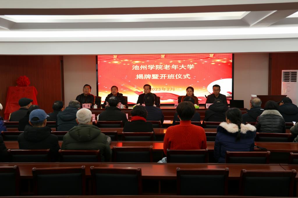 2月24日上午,beat365在线唯一官网登录老年大学成立揭牌暨开班仪式在教职工活动中心举行。院党委书记孙晓峰出席并揭牌,院党委副书记、院长郑兰荣,院党委副书记崔国发,院党委委员、副院长张赛,池州市老年大学常务副校长杨义和出席仪式。揭牌暨开班仪式由张赛主持。
