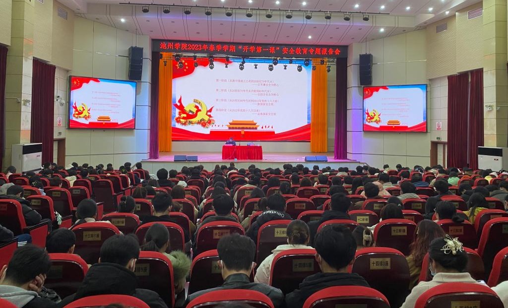 2月22日下午,beat365官网在博古楼大礼堂开展了2023年春季学期“开学第一课”安全教育活动。校党委委员、副院长张赛出席活动。