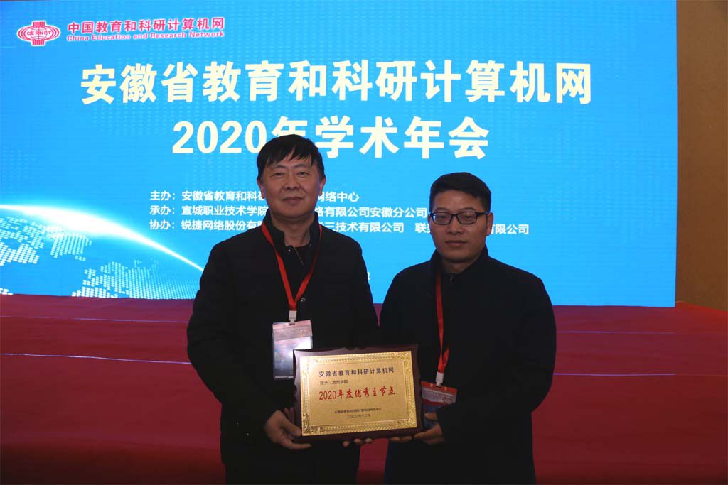 12月17日至18日,安徽省教育和科研计算机网2020年学术年会在宣城市举办。会议由安徽省教育和科研计算机网网络中心主办,宣城职业技术学院和赛尔网络有限公司安徽分公司承办。大会邀请了省教育厅、省网中心、宣城职业技术学院等相关负责同志到会指导,全省高校200余名教师代表参加了会议。会上beat365在线唯一官网登录荣获“安徽省教育和科研计算网优秀主节点”称号,薛日新老师荣获“安徽省教育和科研计算机网2020年度先进个人”称号。
