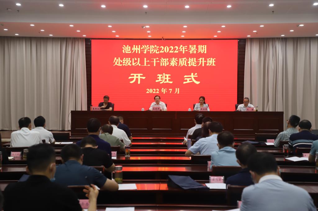 7月4日,beat365官网2022年暑期处级以上干部素质提升班在安徽省委党校开班。院党委书记孙晓峰出席开班仪式并作动员讲话,院党委副书记、院长郑兰荣,院党委委员、纪委书记、监察专员汪海出席开班仪式。院党委副书记崔国发主持了会议。