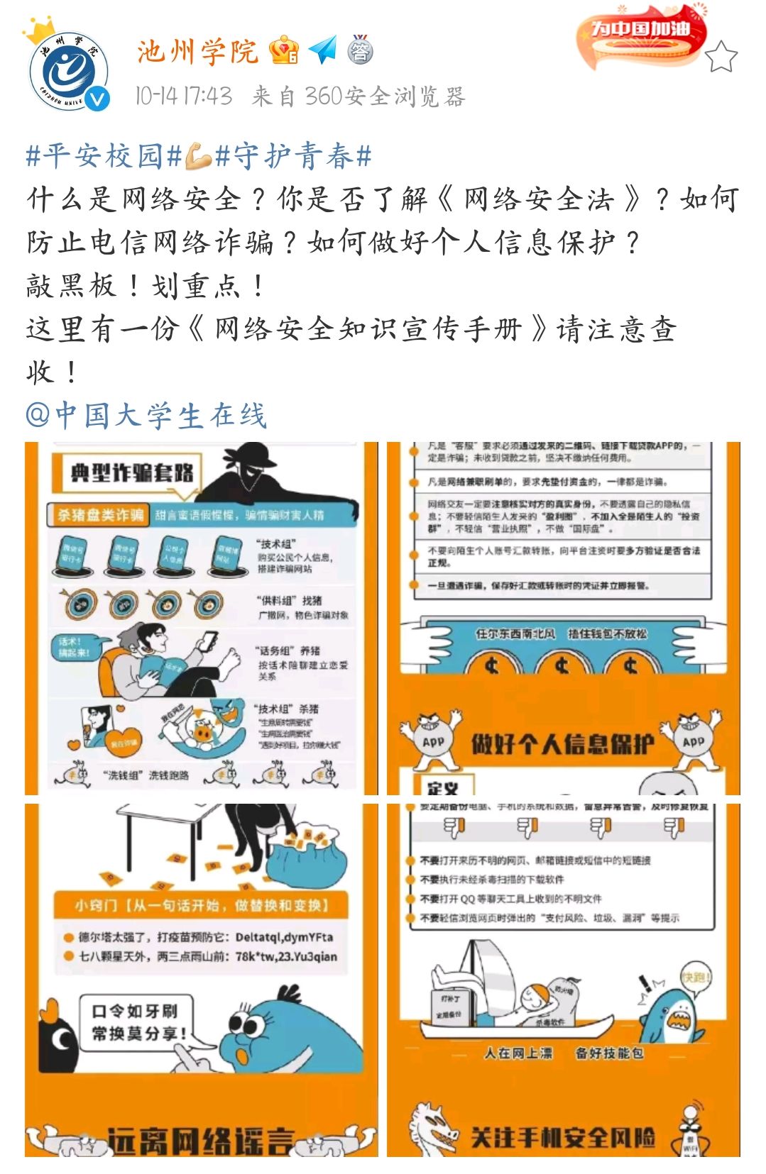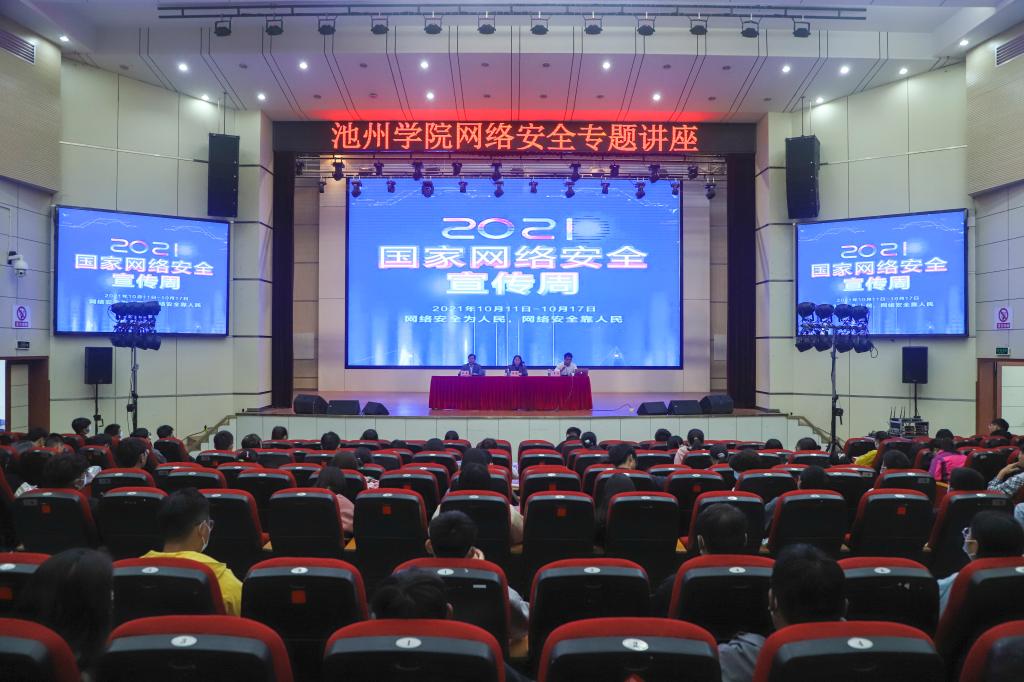 为深入宣传贯彻习近平总书记关于网络强国的重要思想,宣传贯彻习近平总书记对网络安全工作的“四个坚持”重要指示,10月13日下午,beat365官网在博古楼大礼堂举办了网络安全专题讲座,邀请池州市委网信办副主任许娟、池州市网络安全应急支撑单位专家李佳担任主讲人,beat365官网师生代表聆听了讲座。