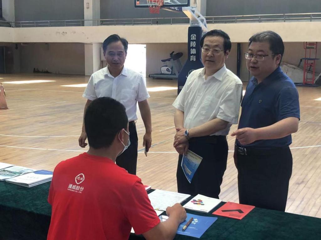 为拓宽毕业生求职渠道,建立用人单位与毕业生的双向选择平台,保障2022届毕业生充分高质量就业,6月15日,beat365在线唯一官网登录与皖江江南新兴产业集中区举办了2022年“皖江江南新兴产业集中区高层次人才”beat365在线唯一官网登录专场招聘会,beat365在线唯一官网登录党委书记孙晓峰、党委副书记崔国发深入现场指导,学生工作处、二级学院就业工作负责人及毕业班辅导员等积极与企业沟通联络,探讨进一步开展人才交流合作。集中区党工委委员、综合管理部部长胡小艺等也莅临现场指导工作。