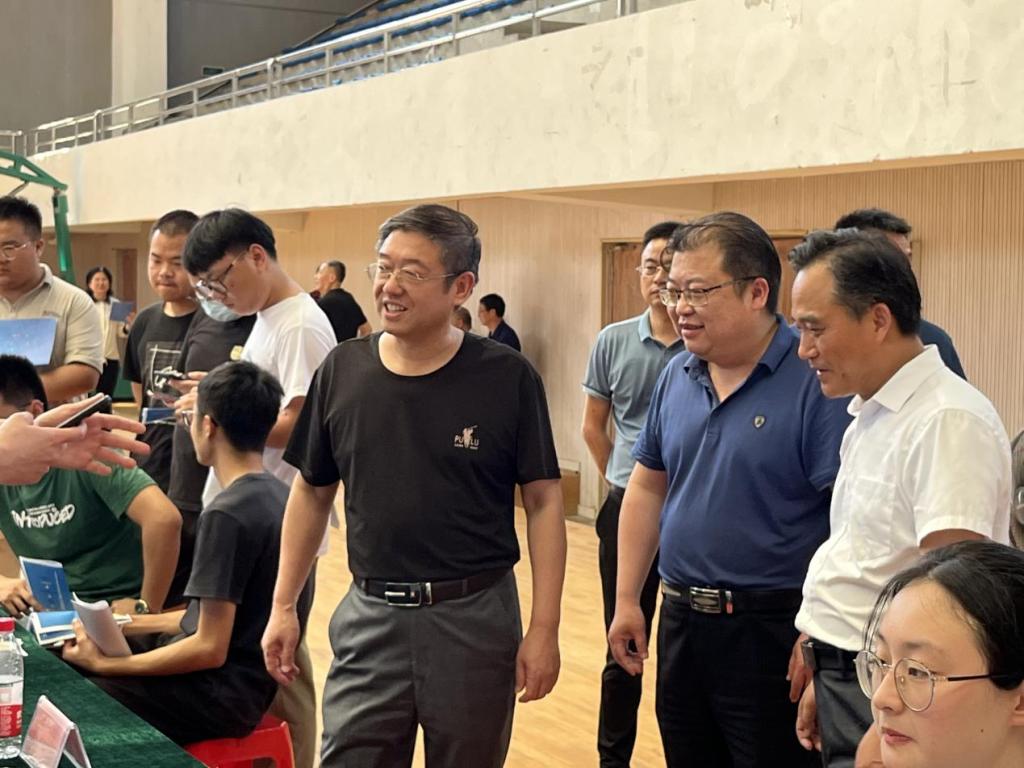 此次招聘会是学校落实教育部要求高校书记、校长访企拓岗促就业专项行动之一。招聘会进行中,院党委书记孙晓峰与集中区党工委胡小艺部长、各家企业代表进行详细交谈,孙晓峰向企业代表介绍了学校办学特色、今年毕业生的基本情况、落实本次招聘会的后续服务,并欢迎企业与二级学院进行长期合作;企业代表介绍了本单位的经营情况、招聘岗位、招聘状况、对毕业生的基本要求、对长期合作的期待。孙晓峰认真听取企业代表的介绍后,表示对企业代表的真诚欢迎、真诚感谢,期待江南产业集中区及各企业与学校进行更深层次合作。