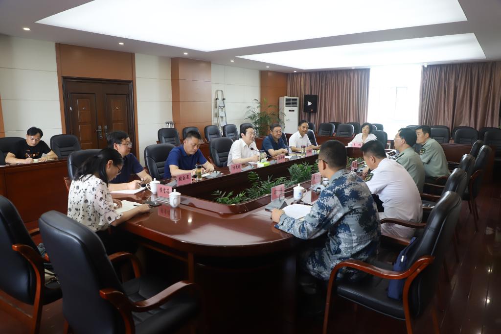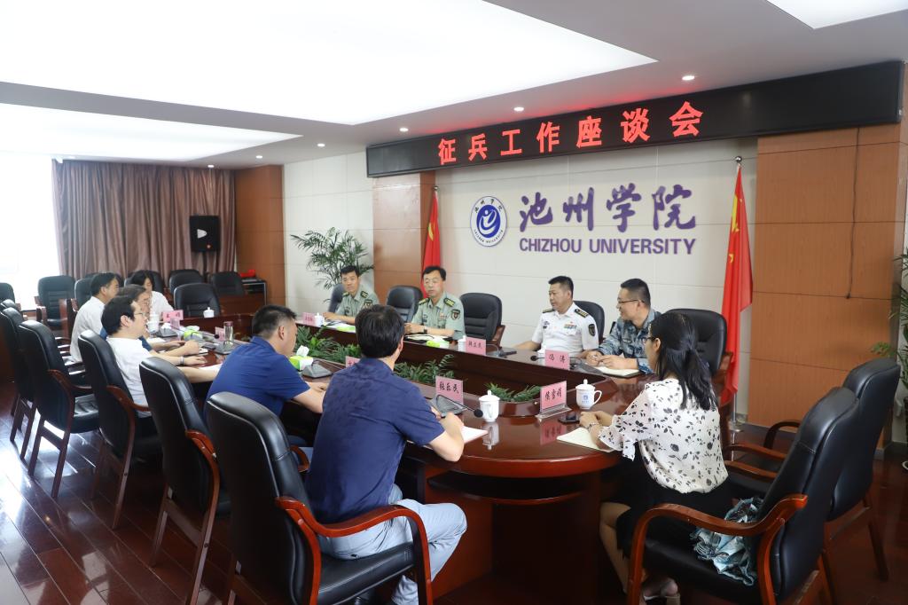 6月9日上午,池州军分区司令员龚辉、副司令员韩立民、动员处处长渠胜红以及贵池区人武部政委冯涛一行到校调研征兵工作。校党委书记孙晓峰、副书记崔国发出席会议并讲话。会议由孙晓峰主持。