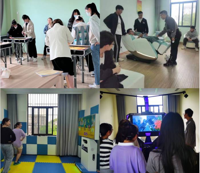 轻松愉悦的心理健康教育中心体验日、开放日活动。学生在参与活动过程中通过参观心理健康教育中心,体验各项设备如按摩放松椅、VR心理测试仪、宣泄设备、涂鸦墙、音乐放松椅等更加了解学校心理健康教育工作,消除学生的心理顾虑。让同学们在中心感受放松、愉悦,同时保证心理健康教育效果。