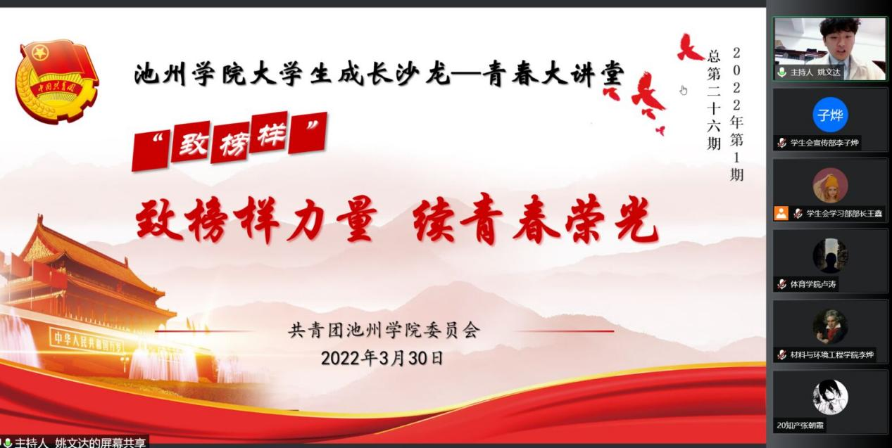 3月30日晚,beat365在线唯一官网登录大学生成长沙龙“青春大讲堂”2022年第一期(总第二十六期)通过“腾讯会议”网络平台线上举行。本期活动以“致榜样力量,续青春荣光”为主题,邀请beat365官网五位2021年国家奖学金获得者代表作为嘉宾进行交流,全校200余名学生代表线上参加。