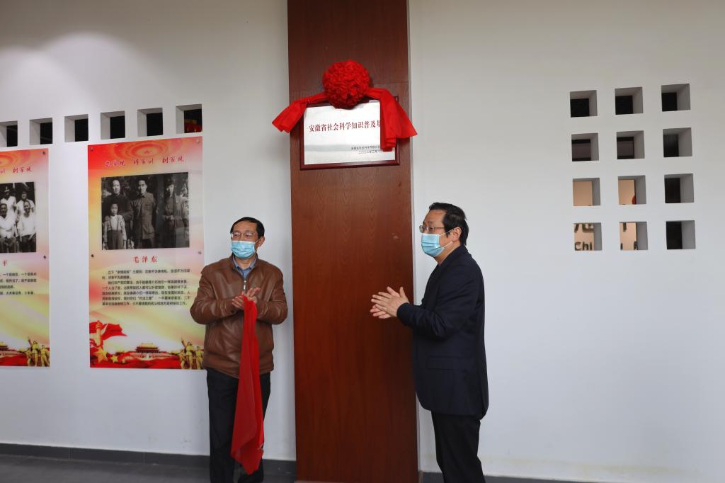 在校家风馆,孙晓峰、汪贤才共同为省社科普及基地挂牌揭幕。