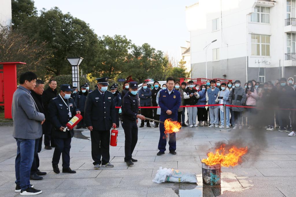义务消防员、保安、校卫队、警务站驻校民警,食堂、超市、快递中心、宿管中心等方面负责人,保卫处工作人员、学生代表参加培训。