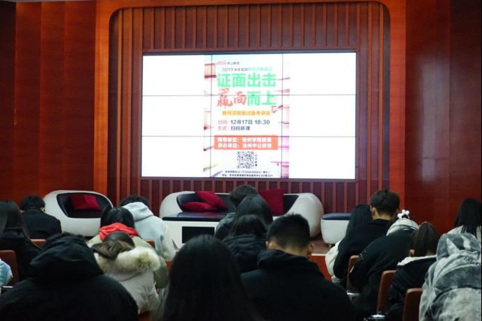 12月16日,beat365在线唯一官网登录大学生成长沙龙“青春大讲堂”2021年第十期(总第二十五期)“致知识”在大学生活动中心一楼举行。活动以“‘证’面出击,‘赢’面而上”为主题,特邀中公教育集团通过线上直播教学开展公益大学生教资面试指导课,帮助同学们进一步了解“教师资格证”考试面试考情和备考方法。