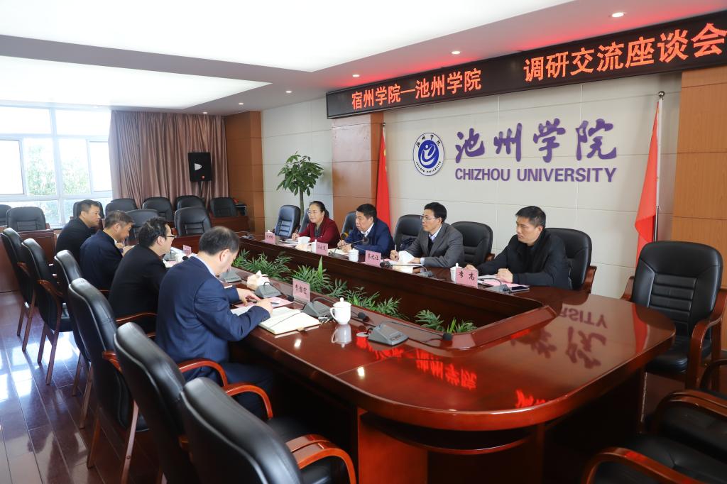 11月11日,宿州学院党委书记汪刘送,党委副书记蔡之让,党委委员、组织部部长陈啸吟,办公室主任李高一行4人来学校调研交流干部工作和基层党建工作。beat365官网党委书记孙晓峰主持调研交流会。