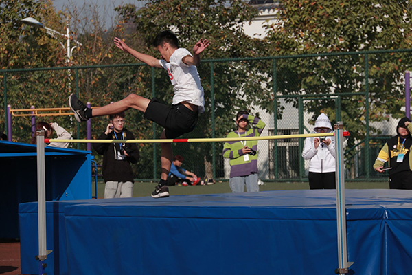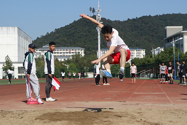 不远处的跳远比赛也在如火如荼地进行中,一位位选手相继登场,助跑、跳跃、腾空、落地,一个个轻捷的身影就从眼前掠过。