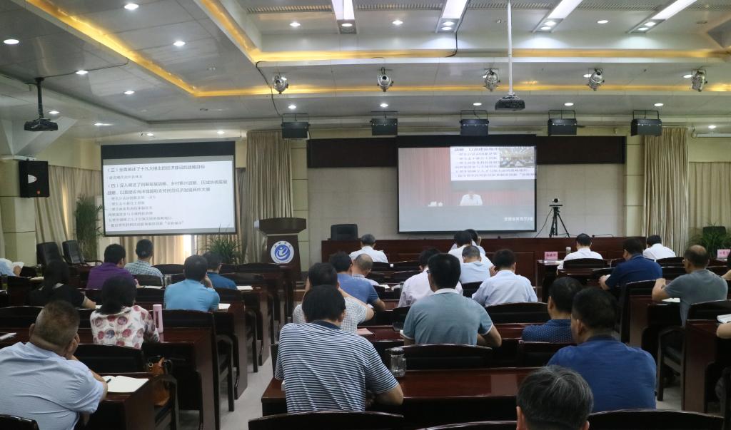 7月31日上午,省委教育工委举行全省教育系统《习近平谈治国理政》第三卷学习辅导报告会。省委党校副校长胡忠明教授解读《习近平谈治国理政》第三卷,省委教育工委书记钱桂仑主持报告会,并就全省教育系统和委厅机关学习宣传贯彻《习近平谈治国理政》第三卷进行动员部署。beat365官网在办公楼南二楼会议室设分会场组织收看视频学习辅导报告会,校领导孙晓峰、柳友荣、王延寿、汪海、阳光宁,全体中层干部、专职思政课教师等哲学社会科学教师代表、辅导员代表等参加观看。