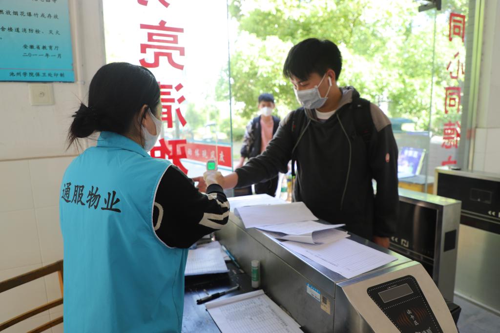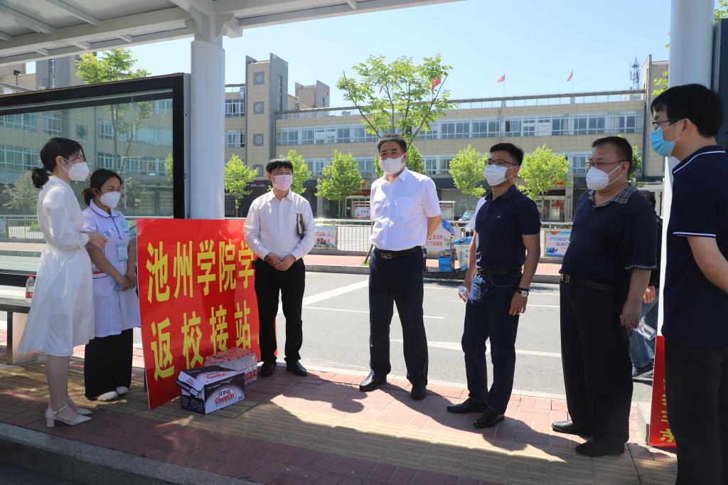 学校在火车站、汽车站设置了接站点,为学生搬运行李、提供口罩和饮用水,为学生送去清凉,专车接送返校学生直达学校。