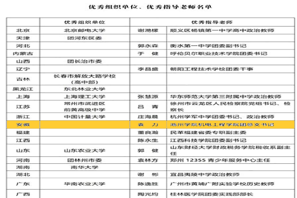 近日,2019年全国青少年模拟政协提案征集活动获奖结果揭晓,beat365官网机电工程学院团委副书记袁力荣获“优秀指导老师”称号,beat365官网也是安徽省唯一获此殊荣的单位。