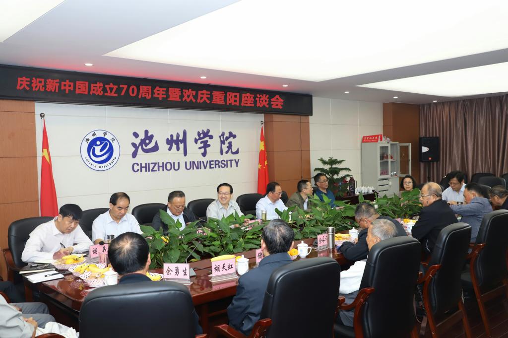 10月7日,学校在办公北三楼会议室召开庆祝新中国成立70周年暨欢度重阳节座谈会。党委书记孙晓峰出席并讲话,副校长王延寿、阳光宁、汪贤才出席会议,办公室、组织部、宣传部、教务处、人事处、后基处、工会(离退休工作处)部门负责人和离退休人员代表参加座谈会。会议由阳光宁主持。