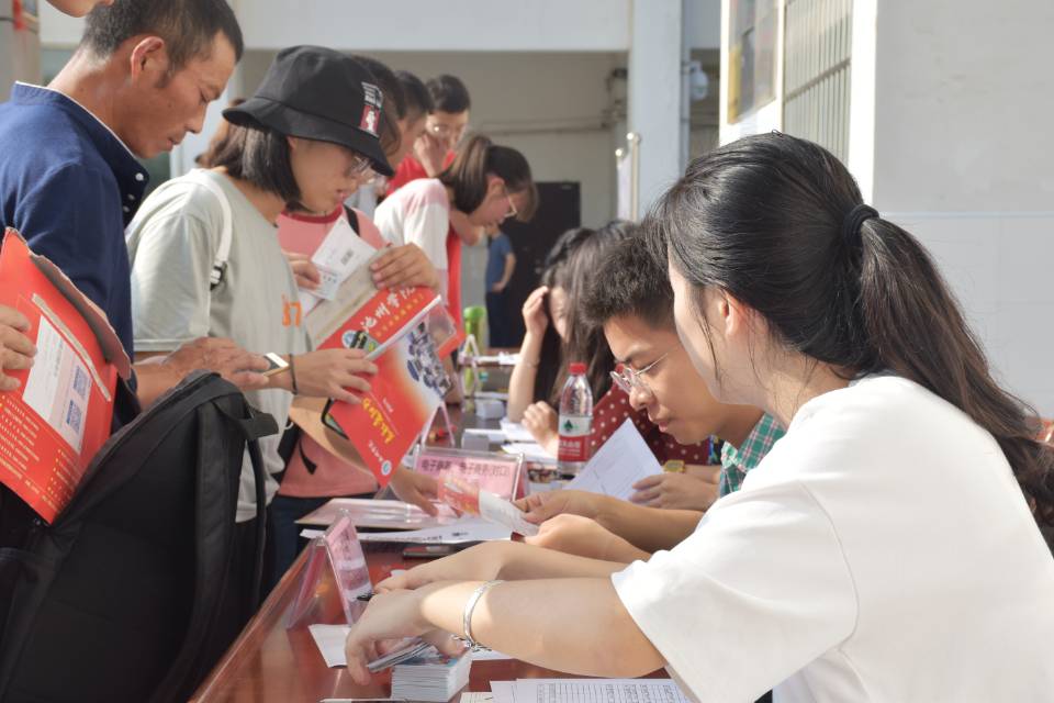 青年志愿者们奔波在校园内,为新生带路、拿行李、帮忙办理入学手续。学校还设置了“绿色通道”咨询服务台,帮助家庭困难的学生通过“绿色通道”顺利入学。