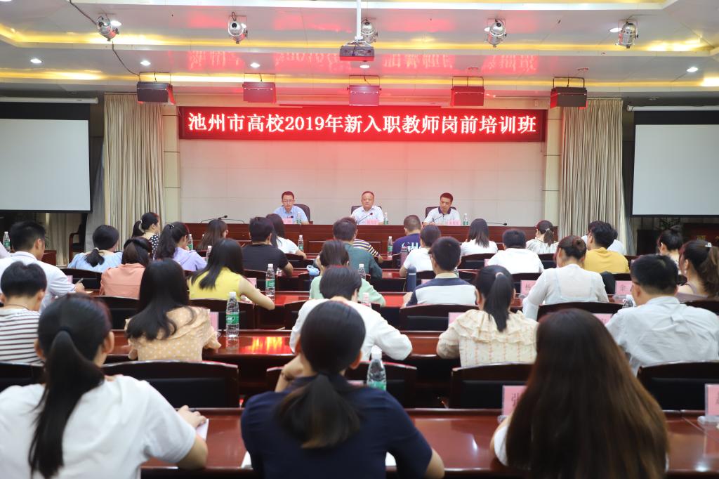 8月8日上午,池州市高校2019年新入职教师岗前培训班开班典礼在beat365官网行政南楼二楼会议室举行。副校长阳光宁出席开班典礼并讲话,来自池州市高校的70名新入职教师参加了开班仪式。