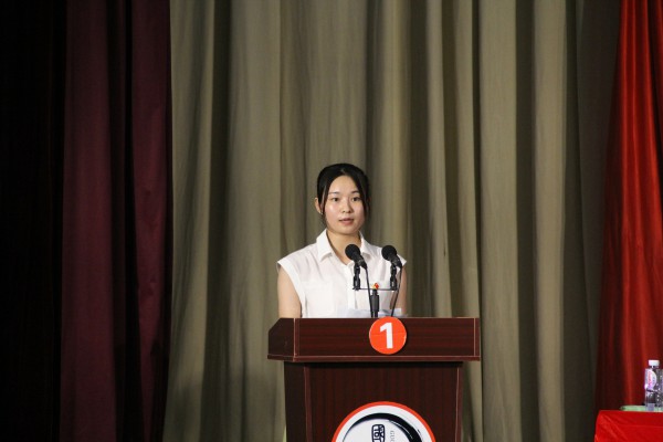 学生新党员代表何美玲发言。