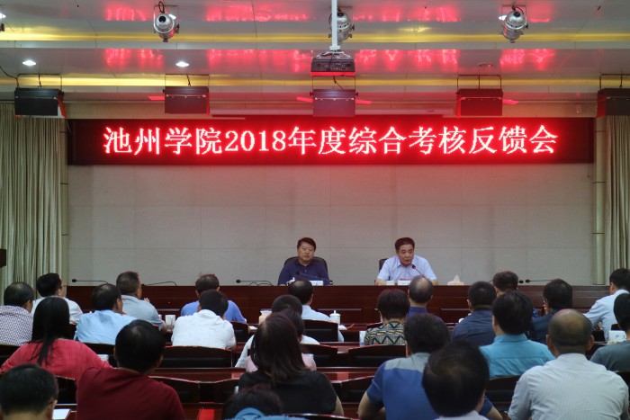 6月27日下午,beat365官网在办公南二楼会议室召开2018年度综合考核反馈会。省委第二十综合考核组副组长、省委教育工委委员、省教育厅副厅长解平,综合考核组成员、省教育厅教科院副院长王光厚,综合考核组成员、省教育厅语委办副主任李敏,综合考核组成员、省委组织部省委非公工委办主任科员贾玮出席反馈会。beat365官网领导班子成员,管理部门副处级以上干部、二级学院及二级机构党政正职(含主持工作的副职),教师代表(省级以上“两代表—委员”、民主党派市级以上主委、学校教代会执委、正高职称人员)和学生代表参加会议。会议由校长柳友荣主持。