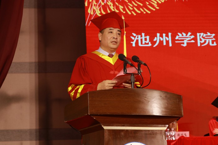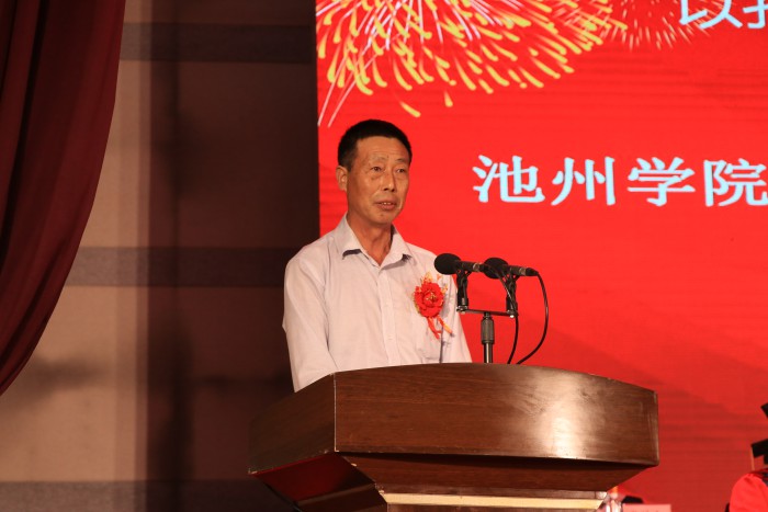 柳友荣代表全校师生员工,向2019届全体毕业生表示最热烈的祝贺。临别之际,柳友荣语重心长地为毕业生们送上临别叮嘱:希望大家能坚守责任,敢于担当,从自己做起,严于律己;希望大家保持正能量,播撒阳光,做一个充满正能量的人,在未来的生活中,少一些抱怨,多一些宽慰,少一些苛责,多一些鼓励;希望大家心存感恩,回馈社会,感恩父母的养育,母校的栽培,老师的提携和同学的鼓励,做一个心存感激的人;希望大家坚持学习,追求卓越,在困难中修身,踏实做事,诚实为人,立足本职,追求卓越。
