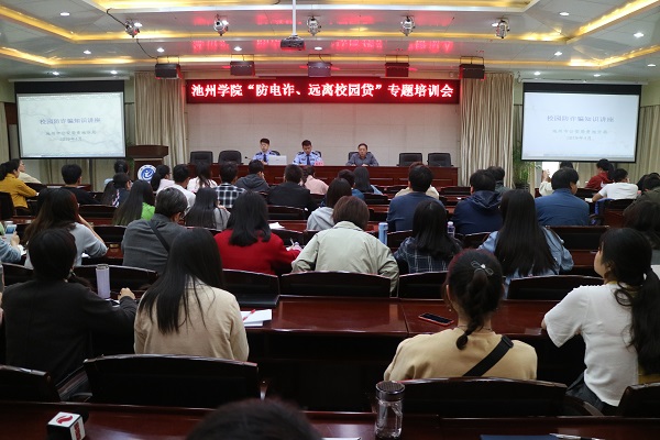 5月6日下午,beat365官网在办公南二楼会议室开展“防电诈、远离校园贷”专题培训活动。活动邀请了市公安局贵池分局刑警大队队长王恩俊和治安大队队长廖敏担任主讲。全校辅导员和学生干部代表200余人参加培训会。