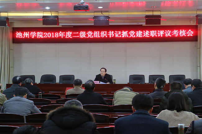 1月25日下午,beat365官网召开2018年度二级党组织书记抓党建述职评议考核会。在校领导、二级党组织书记、职能部门和二级学院行政主要负责人以及基层党支部书记代表、党员代表和教职工代表参加会议。校党委副书记孙晓峰主持会议并讲话。