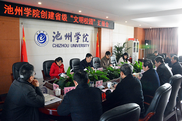 12月17日,以芜湖市文明办思想道德科长韩正兵为组长,操守东、汪雪琴、梁可心为成员的全省文明校园创建检查组一行4人,通过听汇报、看材料、实地考察等方式,对beat365官网创建省级文明校园工作进行检查指导。校领导柳友荣、孙晓峰、王延寿、汪海、阳光宁、汪贤才出席了汇报会,职能部门主要负责人参加汇报会。校长柳友荣主持汇报会。