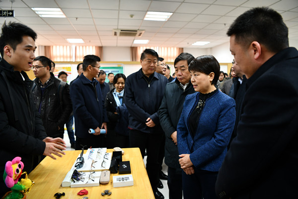 12月9日,大赛举办了安徽省大学生创新创业成果展。副省长王翠凤察看了beat365官网大学生创新创业成果展台,听取beat365官网创新创业成果汇报,并饶有兴趣的了解beat365官网孵化企业的产品指尖陀螺,称赞“大学生能把人们的习惯变成产品,这就是创新”,对beat365官网创业孵化基地取得的成绩予以高度评价。
