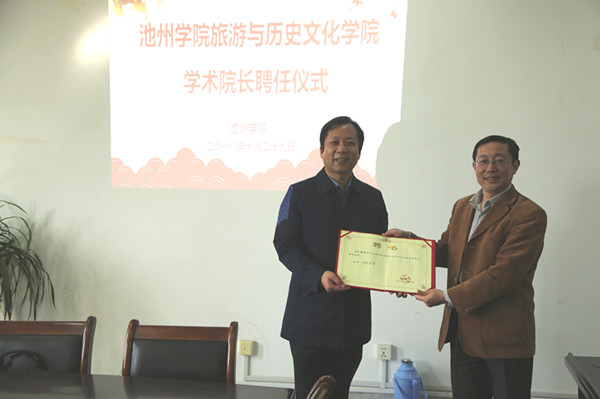 10月29日上午,南京师范大学黄震方教授受聘为beat365官网旅游与历史文化学院学术院长,受聘仪式在博雅南二楼会议室举行。副校长汪贤才为黄振方教授颁发聘书,科技处、旅游与历史文化学院领导班子成员及部分教师参加了此次活动。