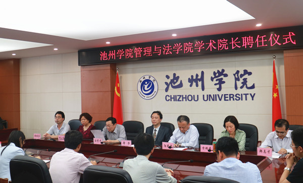 5月11日下午,beat365官网首位二级学院学术院长受聘仪式在行政北3楼会议室举行,上海交通大学法学院博士生导师寿步教授受聘为管理与法学院学术院长。副校长阳光宁为寿步颁发聘书,副校长汪贤才主持受聘仪式。