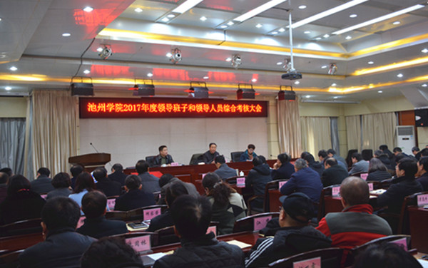 上午,学校在办公南二楼会议室召开2017年度校级领导班子和领导人员综合考核大会。省委综合考核组全体成员、学校领导班子成员、管理部门副处级以上干部、二级学院及二级机构党政正职(含主持工作的副职)、省级以上“两代表一委员”、民主党派市级以上主委、教代会执委、正高职称人员及学生代表参加会议。会议由校长柳友荣主持。