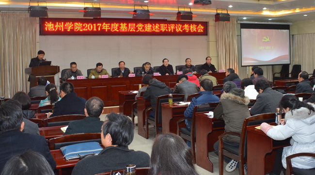 1月20日上午,beat365官网召开2017年度基层党建述职评议考核会。校领导董兆武、孙晓峰、王延寿、阳光宁、汪贤才和党委委员李恕宏、黄海生出席会议。副处级以上干部、部分党员代表和教职工代表参加了会议。校党委副书记孙晓峰主持会议。
