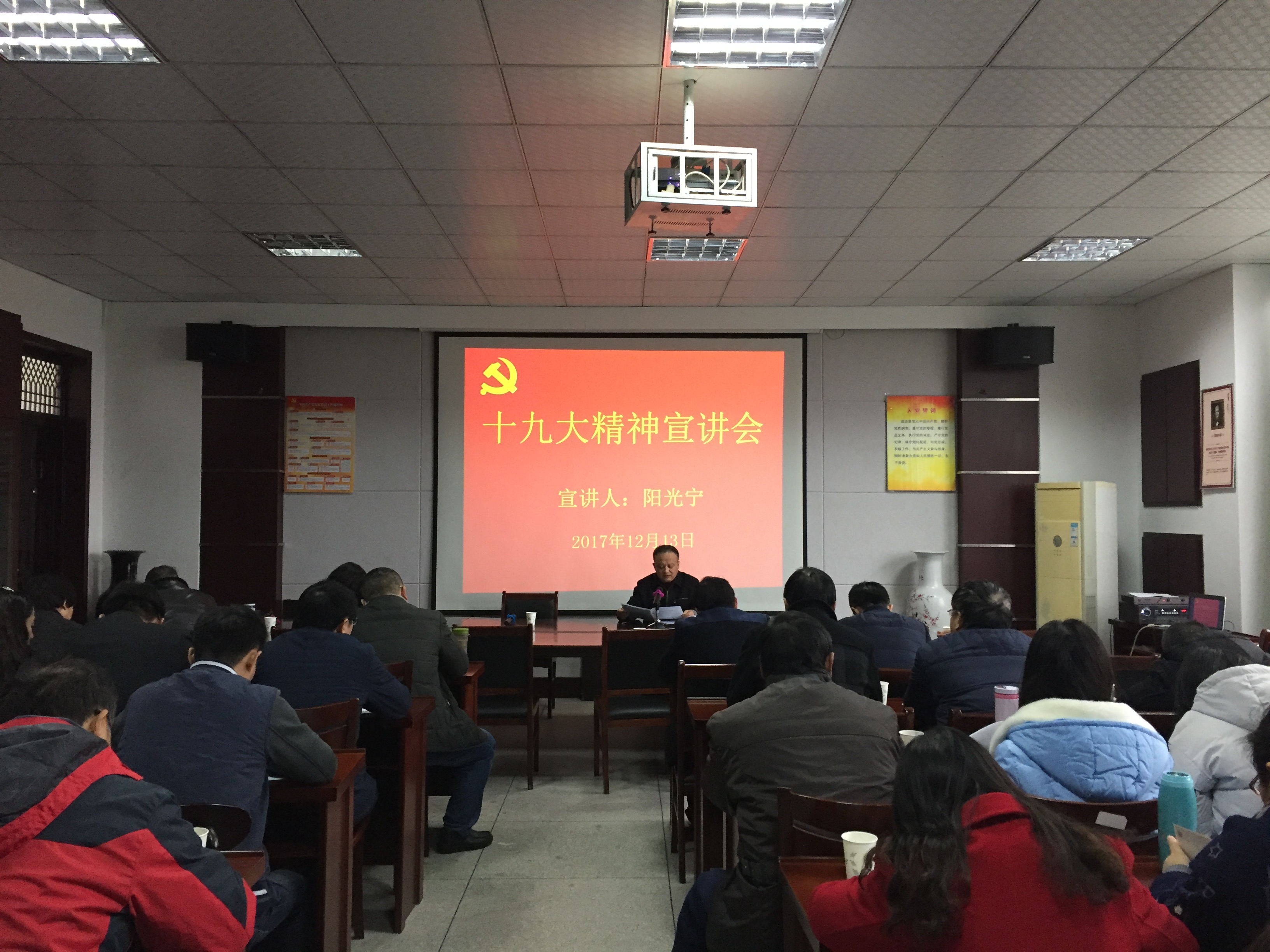 12月13日下午,副校长阳光宁在外国语学院会议室宣讲党的十九大精神。人事处、教务处、外国语学院、继续教育学院、大数据学院教工党员聆听了报告。人事处处长方瑞芬主持宣讲会。