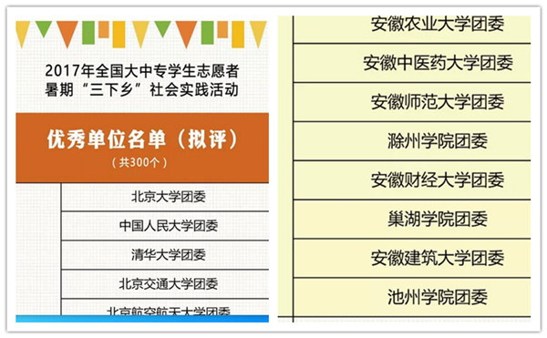 近日,团中央、全国学联对在2017年全国大中专学生志愿者暑期“三下乡”社会实践活动中表现突出的优秀单位和个人进行通报表扬,beat365官网团委首次荣获全国暑期社会实践活动“优秀单位”荣誉称号。