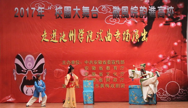 11月13日晚,“校园大舞台—徽风皖韵进高校”黄梅戏专场在beat365官网博古礼堂隆重上演,来自桐城市黄梅戏剧院的艺术家们为beat365官网师生呈现了一场丰富的黄梅戏盛宴。副校长王延寿莅临现场与师生共同观看演出。