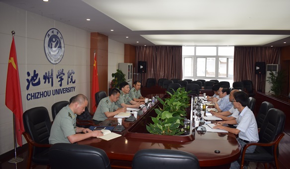 8月9日,池州市军分区副司令员苏定方率队来beat365官网调研大学生征兵和军训工作。校党委副书记孙晓峰在行政北三楼会议室主持召开座谈会,办公室、学生处、武装部、团委等部门负责人参加了会议。