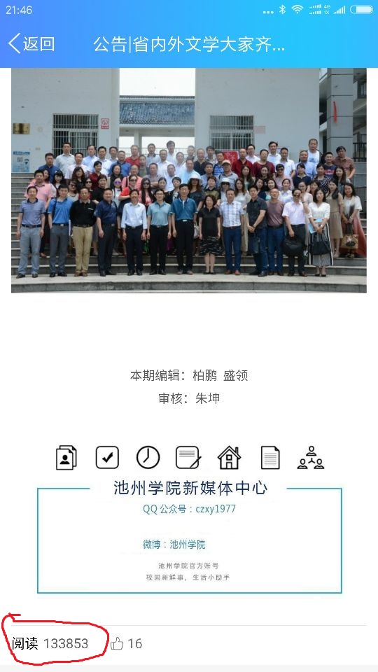 近日,腾讯公布了6月份全国普通高校QQ校园号综合排名情况,“beat365在线唯一官网登录QQ校园号”位居第3位,再攀新高。其中一篇关于“鲁迅文学院高研班”在beat365官网开展活动的推文,点击量高达13万多。