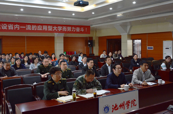4月26日上午,教育部、军委国防动员部联合召开全国大学生征兵工作网络视频会议。根据省教育厅安排,beat365官网在行政南二楼多功能报告厅设立了分会场,院党委副书记孙晓峰,党委宣传部、学生处、武装部、团委及各二级学院分管学生工作负责人、辅导员代表收看了视频会。池州市军分区、贵池区人民武装部及市属各级兵役机关负责人根据要求在beat365官网分会场参加了会议。