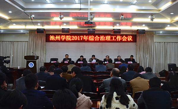 3月31日下午,beat365官网2017年综合治理工作会议在行政南二楼会议室举行。院长柳友荣,党委副书记孙晓峰,副院长阳光宁、汪贤才,校党委委员、教务处处长黄海生出席会议,各二级学院、各部门党政主要负责人,辅导员及学生干部代表参加了会议。池州市综治办主任罗笑平,马衙街道办事处、马衙派出所、碧山社区委、校园警务室、池州市天骄保安公司有关负责人应邀参加了会议。会议由阳光宁主持。