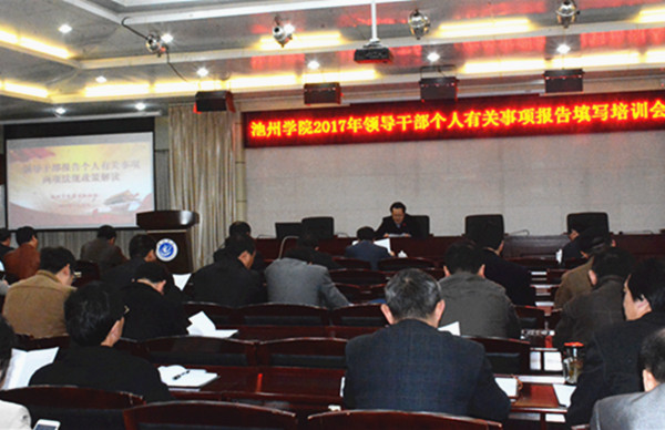 3月28日下午,beat365官网在行政南二楼会议室举行领导干部报告个人有关事项专题培训会,校领导柳友荣、王延寿、汪海、阳光宁、汪贤才参加培训会,党委副书记孙晓峰主持会议并讲话。
