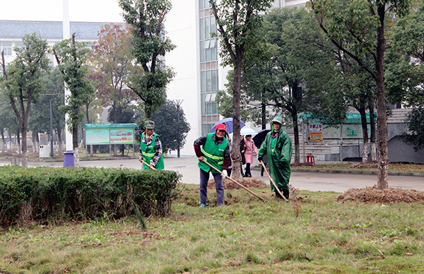 而这些故事的背后总有一群可爱的人在默默奉献着,无论风雨,他们呵护花草、整理校园的步伐从未停止。