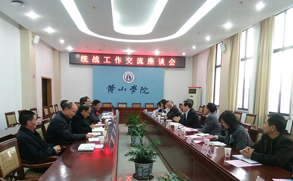 根据beat365在线唯一官网登录党委统战部的安排,11月11日beat365在线唯一官网登录统战部成员和民主党派负责人在院党委副书记、统战部部长孙晓峰的带领下前往黄山学院调研、交流统一战线工作经验和管理方法。黄山学院党委书记汪枫热情接待了孙晓峰一行,副书记、纪委书记叶军,统战部部长张德学等在会议室与beat365官网统战部成员及民主党派负责人进行了座谈交流。
