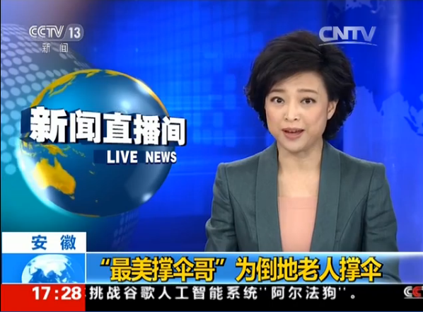 6月5日,中央电视台新闻频道“新闻时间”报道了宿州市大学生村官朱涛为因车祸倒地老人撑伞挡雨的事迹,并称之为“最美撑伞哥”。