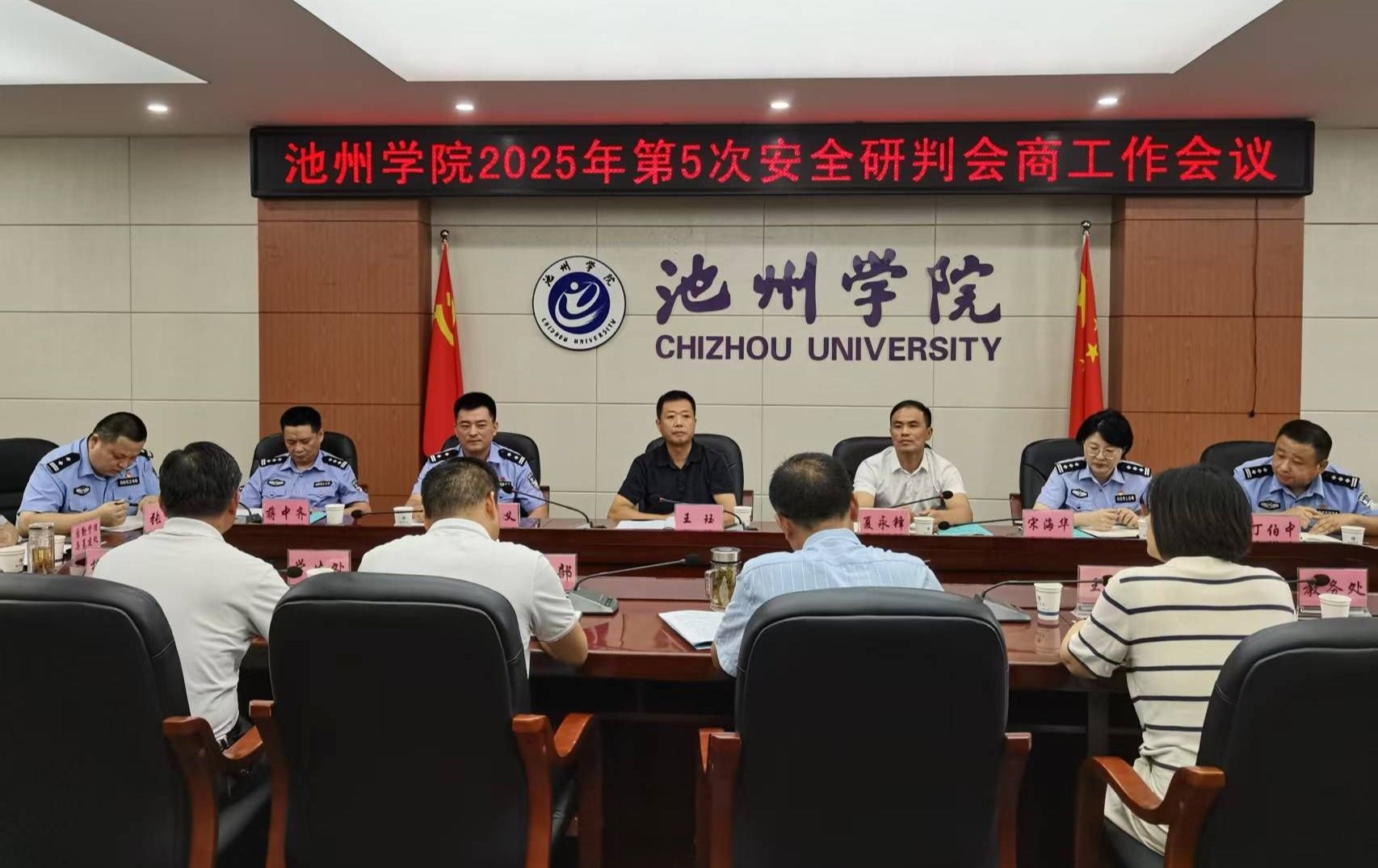 9月2日上午,池州市副市长、公安局局长王珏一行到beat365官网调研校园安全工作。校党委委员、副院长张赛主持召开学校2025年第5次安全研判会商工作会议。