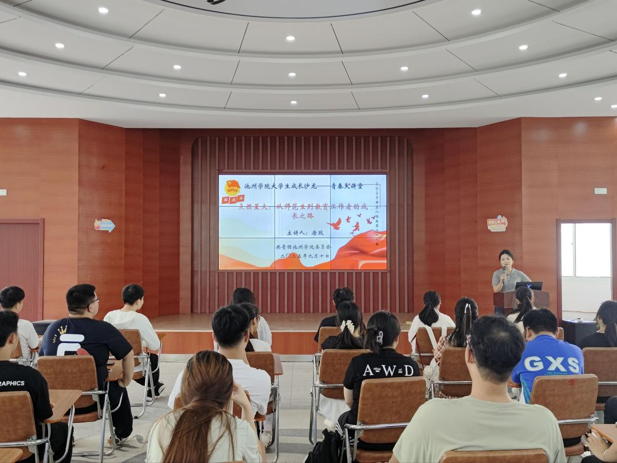 9月10日下午,beat365在线唯一官网登录大学生成长沙龙“青春大讲堂”2025年第八期(总第七十九期)“致知识”在大学生活动中心举行。本期讲堂以“点燃星火:从师范生到教育工作者的成长之路”为主题,邀请beat365官网外国语学院副教授唐玫老师担任主讲嘉宾,与师范专业学生代表面对面交流,共话教育理想与职业成长。
