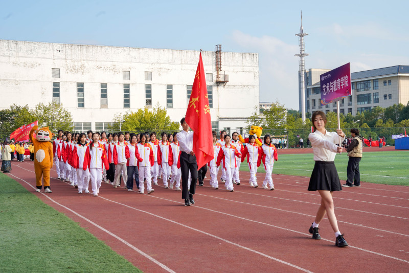 在激昂的乐曲中,各学院方阵依次走过主席台,步伐整齐、精神抖擞,展现出师生昂扬向上的精神风貌。