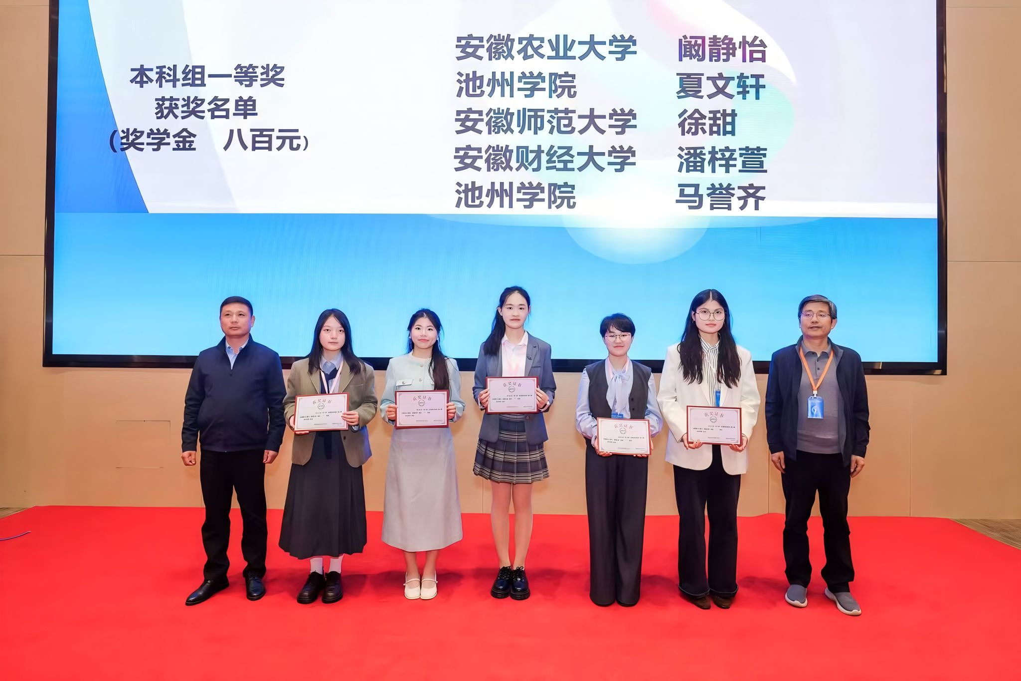 在决赛角逐中,beat365官网外国语学院夏文轩、艺术与教育学院马誉齐两位同学凭借扎实的英语功底与出色的临场发挥,从众多优秀选手中脱颖而出,双双荣获一等奖。唐玫、汪玲玲、闻雯三位老师荣获本科组“优秀指导教师奖”。其中,夏文轩同学还作为获奖学生代表在颁奖典礼上发言,分享了如何借助人工智能技术高效备赛、提升语言能力的独特心得与感悟。