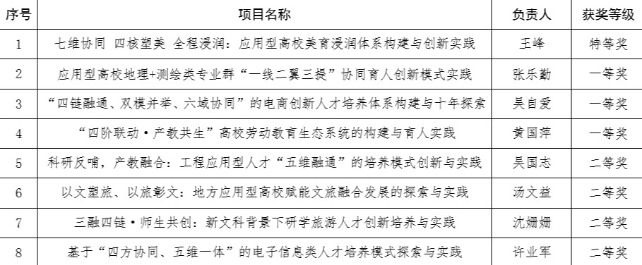 学校将以此次获奖为契机,坚持立德树人根本任务,持续聚焦高等教育内涵建设,进一步发挥优秀教学成果的示范引领作用,加快教学成果经验推广与应用,鼓励引导广大教师积极开展教育教学改革研究与实践工作,以高水平成果带动教学模式和教学方法创新,努力推动学校教育教学水平和人才培养质量再上新台阶。