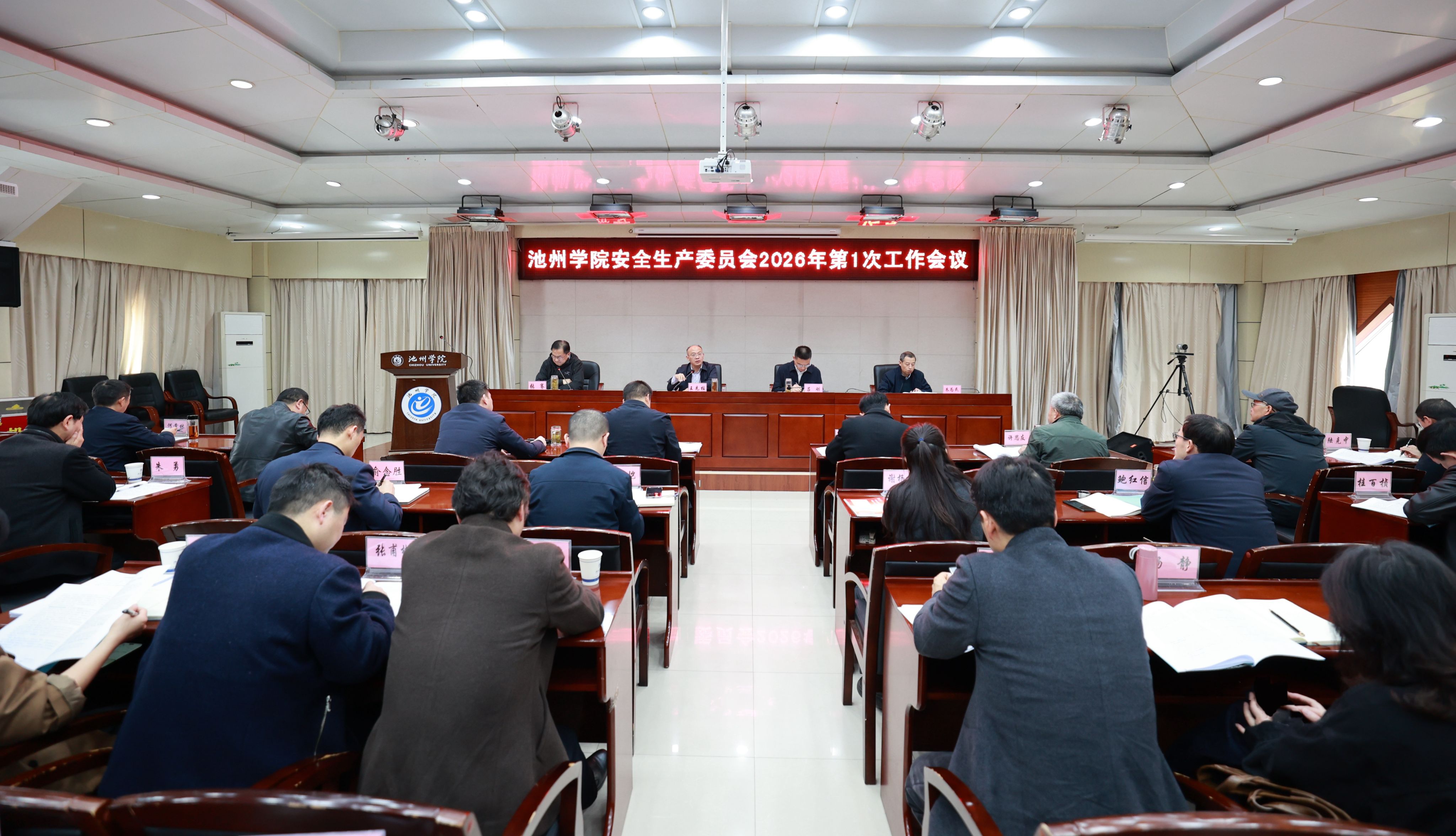 为统筹推进校园安全稳定工作,筑牢学校高质量发展安全屏障,3月27日上午,学校在行政南二楼会议室召开2026年安全生产委员会第一次工作会议。校党委副书记、院长王先柱出席会议并讲话,党委委员、副院长吕刚,党委委员、副院长张赛,党委委员、纪委书记、监察专员朱为民出席会议。会议由张赛主持。