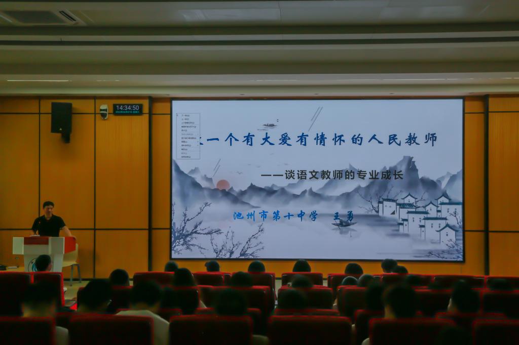 6月7日,池州市第十中学副校长王勇应邀来文学与传媒学院作题为《做一个有大爱有情怀的人民教师》报告,近200名师生聆听了报告。报告会由文学与传媒学院副院长高祥华主持。